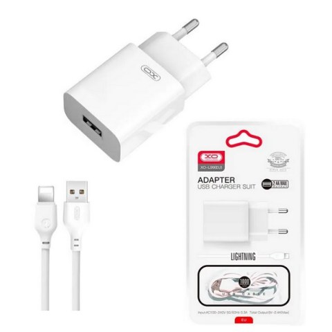 Φορτιστής σπιτιού σετ XO L99 EU 2.4A με καλώδιο USB Α / Lightning White σε λευκό χρώμα 1m (EU BOX)