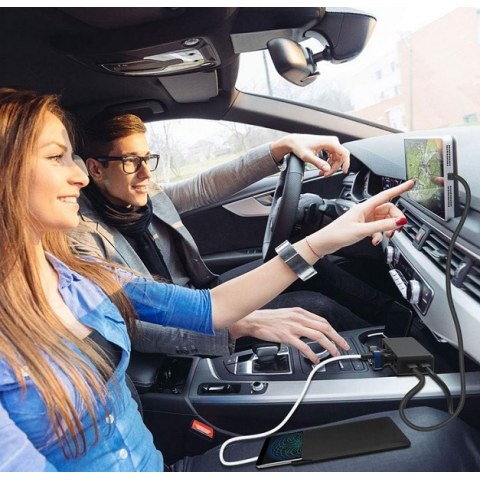 Φορτιστής αυτοκινήτου με τέσσερις θύρες USB. Επιτρέπει την ταυτόχρονη φόρτιση τεσσάρων φορητών συσκευών.