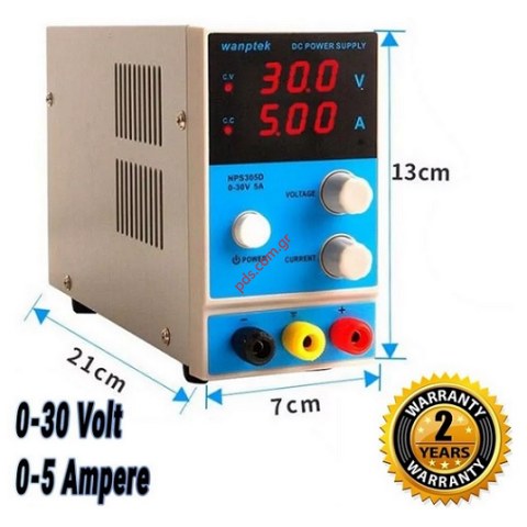ΕΡΓΑΣΤΗΡΙΑΚΟ ΤΡΟΦΟΔΟΤΙΚΟ WANPTEK Τάση εισόδου:230V AC 50/60Hz Τάση εξόδου: 0-30V D.C Ρεύμα εξόδου: 0-5Α Ενδείξεις: Ψηφιακές (LCD οθόνη) τάσης και ρεύματος εξόδου Κατάλληλο: Για εργαστηριακή χρήση Διαστάσεις: 135x210x70 mm Βάρος: 1.5 Kgr