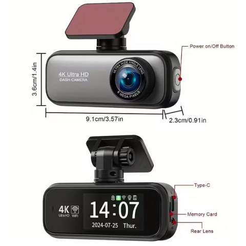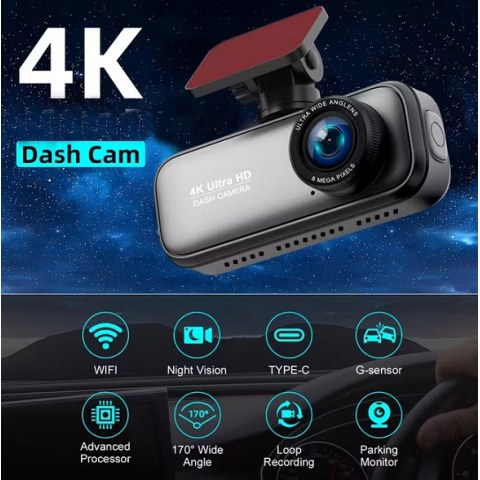 Κάμερα Αυτοκινήτου 4K, Ultra HD με Οθόνη IPS 5.0cm, Εφαρμογή Έλεγχος, Ενσωματωμένο Wi-Fi & G-Sensor, Γωνία 170°, Παρακολούθηση Στάθμευσης 24H, Νυχτερινή Όραση, WDR, Εγγραφή Βρόχου, Υποστήριξη Κάρτας Micro SD έως 256G.