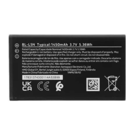 Γνήσια μπαταρία BL-L5N για Nokia Phone 6310 2G (TA-1607) 2024 Lion 3.8V Bulk ORIGINAL