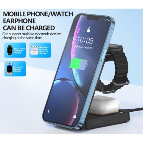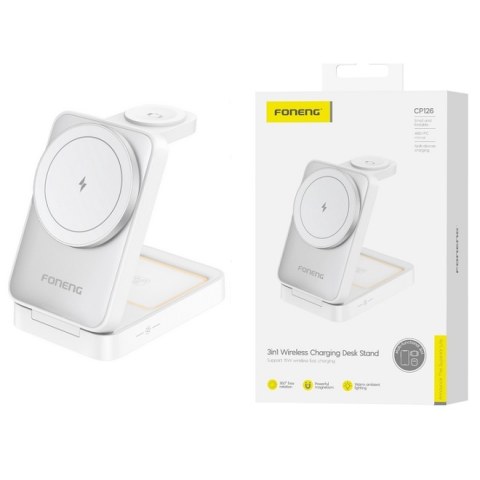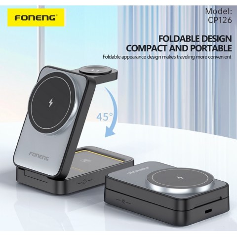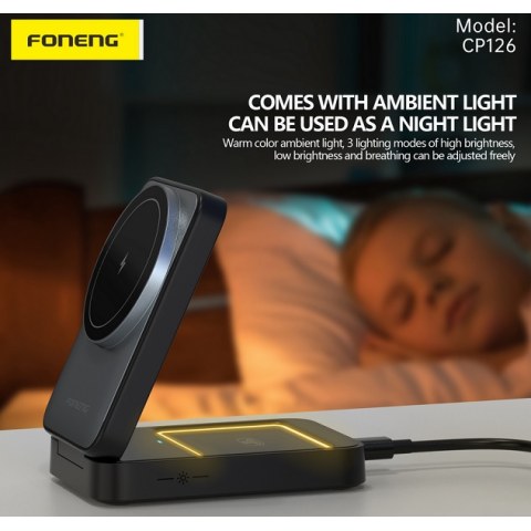 The Foneng CP126 3in1 foldable magnetic wireless charging pad offers a stylish solution for charging up to three devices simultaneously. With a wireless output of up to 15W for phones, 5W for headphones and 3W for smartwatches, it supports various charging protocols. Improving usability, it also functions as a night light with three adjustable lighting modes.