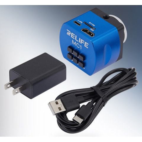 Technical Specifications: - Brand: RELIFE - Model: MC1 - Net Weight: 120 g - Gross Weight: 275 g - Product Dimensions: 51 × 42 × 51 mm - Package Dimensions: 130 × 100 × 60 mm - Interfaces: HDMI + Type-C + TF Card - Sensor Size: 1/2.7 inch - Power Supply: Type-C Interface (5V) - HDMI Output Resolution: 4K @30FPS / 1080P @60FPS - USB-PC Output Resolution: 4K @30FPS / 1080P @60FPS - Photo Resolution: 4K - Video Resolution: 4K / 1080P / 720P - Menu Languages: Chinese, English, Traditional Chinese, Japanese, French, Spanish, German, Italian, Portuguese, Russian, Arabic - Moving reticle: Supports 32 horizontal and vertical lines, with color and thickness adjustment. - Lens interface: CS-mount - Operating current: 600mA - Effective pixels: 4K (3840×2160) / Still image: 60MP (10368×5888) - Scanning method: Progressive - Shutter type: Electronic - Dynamic range: 69dB - Signal-to-noise ratio: 40dB - White balance modes: One-shot, manual, automatic - Reflection reduction: Yes - Black and white mode: Yes - Negative: Yes - Mirror image: Yes - Freeze/thaw function: Yes - Image parameter adjustment: Yes Package Contents: 1 x MC1 4K Microscope Camera 1 x HDMI Cable 1 x Type-C Cable 1 x Power Adapter 1 x Remote Control